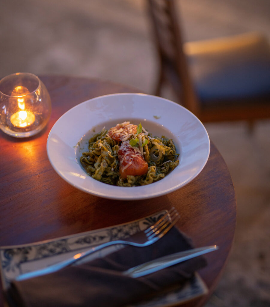 Nguyên liệu thường được lựa chọn từ rau củ địa phương, thảo mộc bản địa và các sản vật theo mùa, giúp giữ trọn vị tươi ngon và tinh thần “ăn lành – sống xanh”.